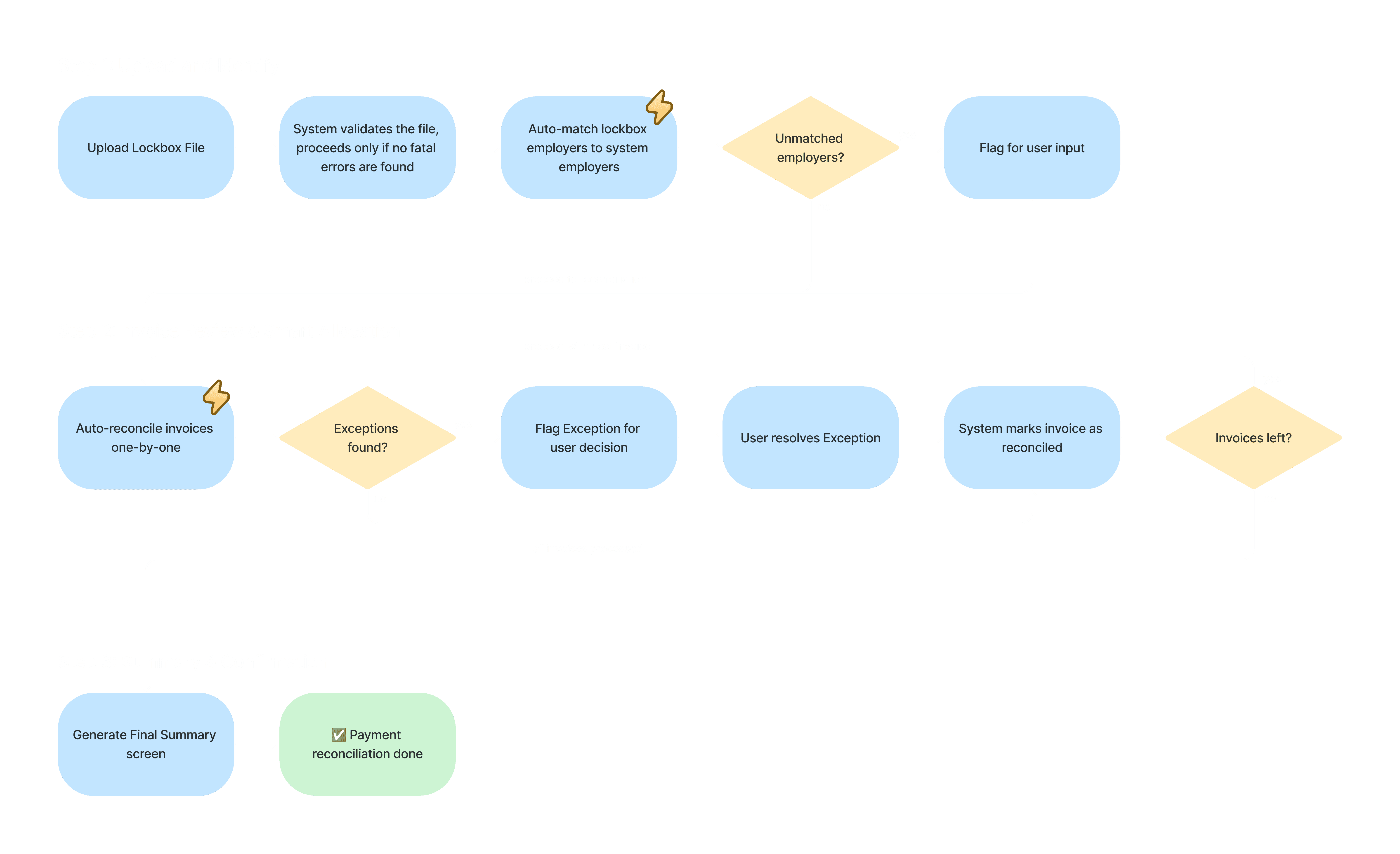 This process was repeated for every single invoice. My design strategy was to automate these repetitive steps, requiring user intervention only for exceptions.